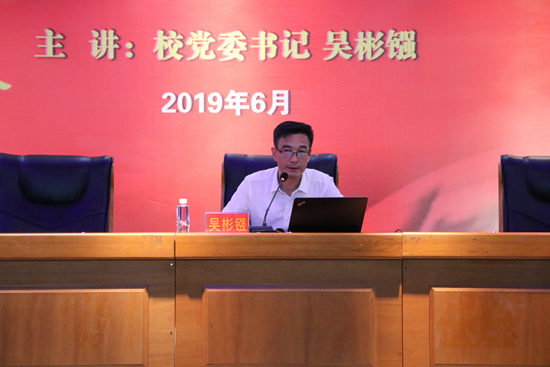 在2019屆畢業生離校之際,6月22日上午,閩南師范大學黨委書記吳彬鏹以《守初心擔使命 爭做擔當民族復興大任的時代新人》為題,在學校逸夫圖書館五樓報告廳為2019屆畢業班學生黨員上了一堂生動的思想政治理論課。