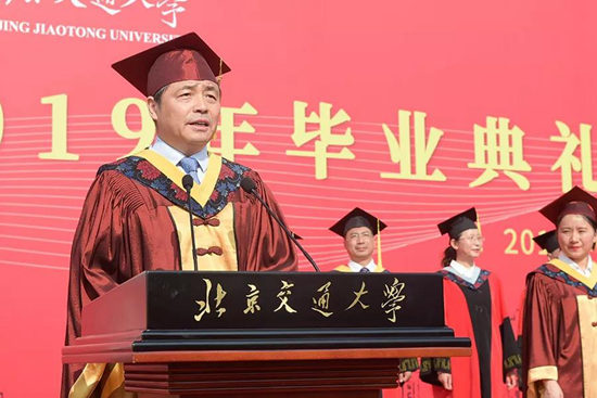 今天是交大的節日。我們在這里隆重舉行北京交通大學2019年畢業典禮暨學位授予儀式。在這感恩和祝福的時刻,我看到了前來參加典禮的各位家長朋友,特別感謝你們的信任,把這么優秀的孩子送來交大,并與我們共同見證孩子的成長。我看到了為同學們成長辛勤付出的各位教職員工,你們的努力撐起了交大的這片天地。最為特別的是,我向今天典禮的主角兒,2019屆的全體畢業生同學們,致以最熱烈的祝賀和最美好的祝福。