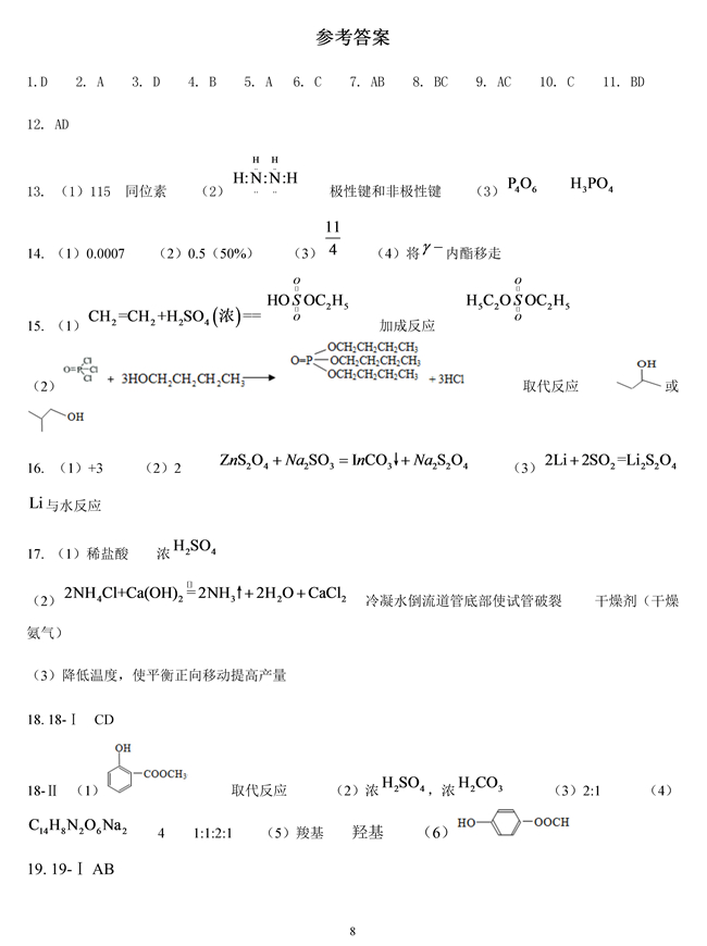 2019高考海南省化學試卷答案