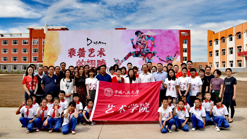 7月1日,中國人民大學藝術學院師生赴黑龍江省綏化市青岡縣柞崗鎮中心小學開展公益支教,獻禮黨的98歲生日。