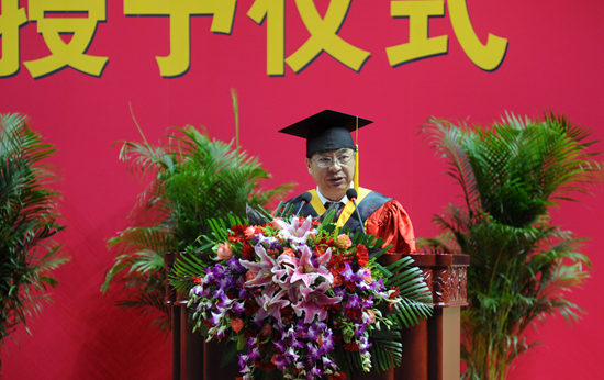 今天我們在這里隆重舉行畢業典禮,為2019屆5600余名畢業生行正冠撥穗之禮!在此,我代表全校3萬余名師生對同學們圓滿完成學業、踏上人生新征程表示最熱烈的祝賀!向辛勤養育你們的父母、悉心指導你們的老師、關心和支持你們成長的每一位朋友,致以最誠摯的感謝和最崇高的敬意!