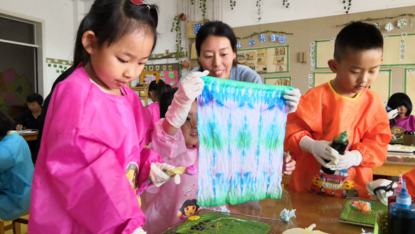 幼兒園在開展剪紙、刺繡、扎染、水墨畫、泥塑等傳統藝術教學基礎上,又引進了風箏、造紙、舞龍、團扇、京劇臉譜等具有中國特色文化的教學活動。教師引導幼兒了解了傳統藝術的發展歷史,孩子們用筆墨、針線、染料、陶泥、紙漿等材料,通過畫、扎、染、捏、剪、粘等方法,感受我國傳統藝術文化的神奇魅力。