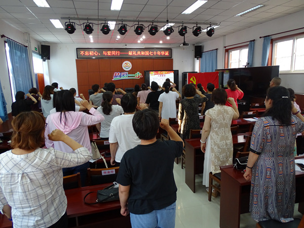 活動最后一項為全體黨員重溫入黨誓詞,在莊嚴的誓詞聲中,黨員教師們又一次明確自己的責任和義務——做合格共產黨員。