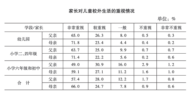 對于兒童的校外生活,85%以上的家長表示“很重視”,60%的家長、59.3%的兒童對目前的校外生活表示“很滿意”或“比較滿意”。90%以上的家長認為校外生活對孩子的成長很有價值。95%以上的家長、89.5%的兒童認為校外生活有效提高了兒童人際溝通交流方面的能力。