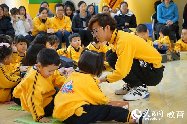 韓佩池在朝陽區金盞小金星幼兒園工作,可能你想不到,這名自信、陽光、充滿朝氣的大男孩,是園中唯一的一名男老師。