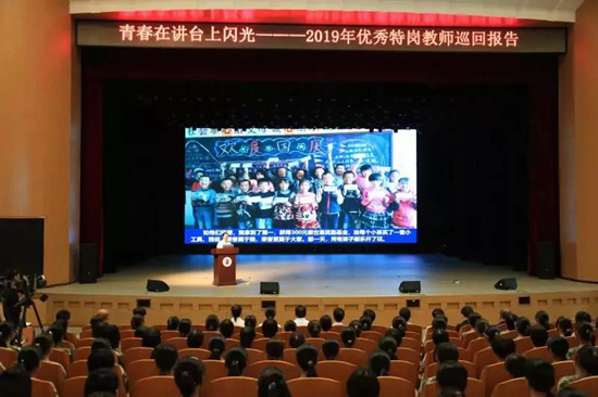 人民網訊 3日上午,由教育部組織的“青春在講臺上閃光—優秀特崗教師巡回報告團”全國巡講首場報告會走進河北師范大學。在新中國成立70周年和第35個教師節來臨之際,為宣傳特崗教師不忘立德樹人教育初心,扎根農村為黨為國教書育人的光榮事跡和突出貢獻,教育部教師工作司精心籌劃組織了本次全國巡講活動。