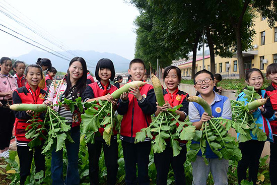 此外,在建隊日來臨之際。學校還組織三五年級364名隊員,走進完小的“開心農場”。隊員們在老師的指導下認識冬小麥,扒苞米,刨紅薯,拔蘿卜,體驗勞動帶來的快樂!稗r耕運動會”上,孩子挑扁擔,推小車,運南瓜,夾花生……在一個個妙趣橫生的比賽活動中,讓隊員們以特殊的形式慶祝建隊日。