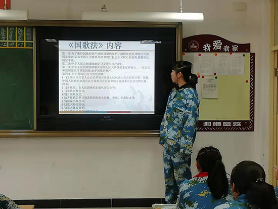 學校利用升國旗儀式、主題班會活動,團日活動開展了《國歌法》《國旗法》《國徽法》宣傳教育,此次活動廣泛深入地普及國旗、國歌、國徽知識,引導學生們自覺維護國旗、國歌、國徽尊嚴,培養師生的愛國主義情懷,以實際行動慶祝中華人民共和國成立七十周年。