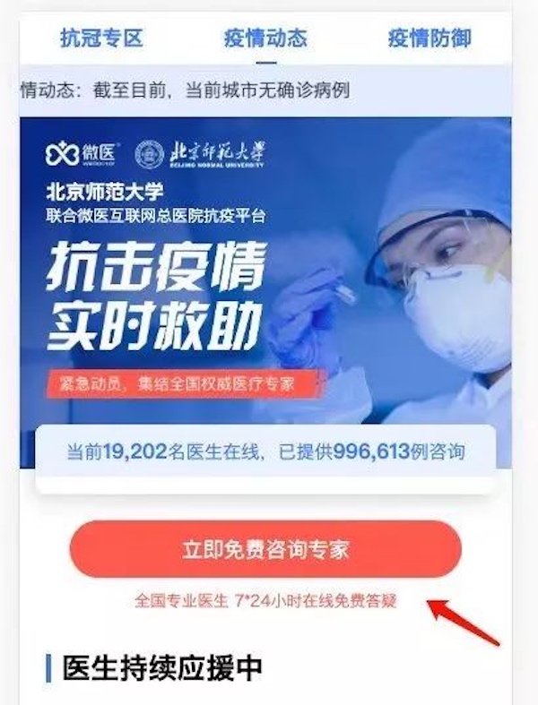 為更好的保護師生生命安全和身體健康,北京師范大學聯合微醫互聯網總醫院抗疫平臺共同為廣大師生提供網上在線咨詢服務。