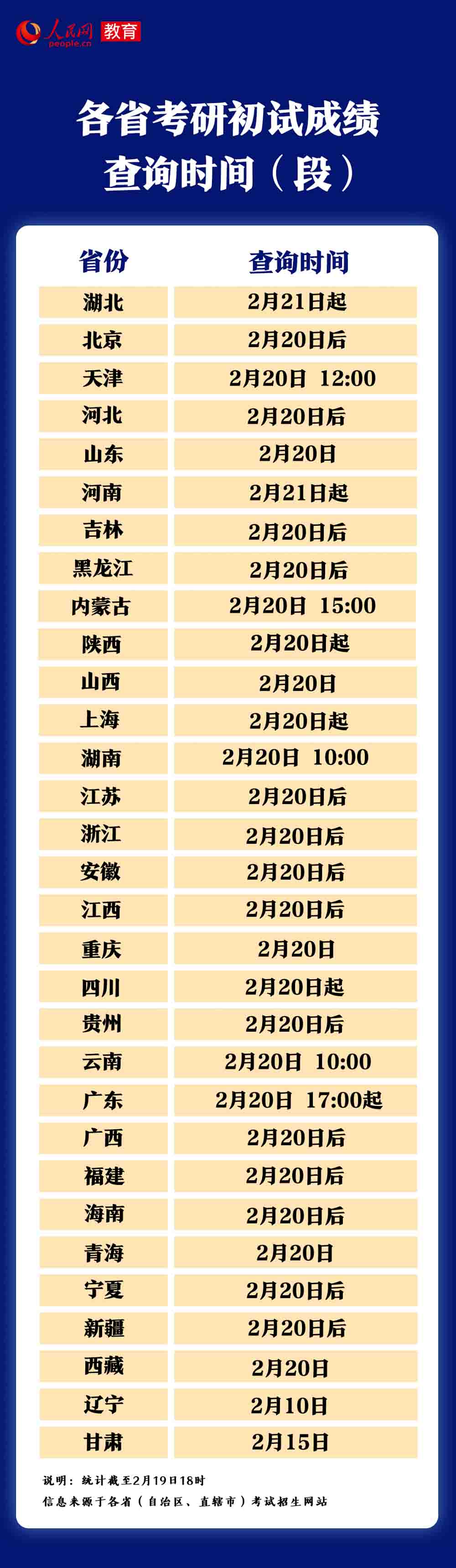 人民網北京2月20日電(李依環 唐文清)受新冠肺炎疫情影響,此前多地推遲公布2020考研初試成績。據各省份考試招生網站消息,截至目前,全國多個省份公布時間已確定?忌傻顷懼袊芯可猩畔⒕W或高校官網查詢初試成績。
