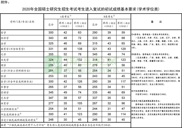 教育部公布2020年全國碩士研究生招生考試國家分數線