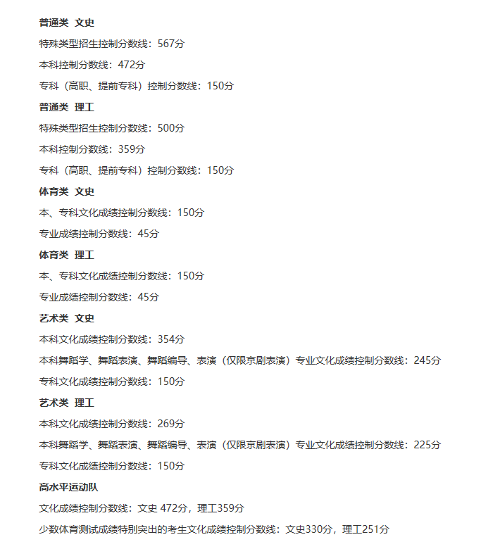 2020年遼寧省普通高等學校招生文化課錄取控制分數線