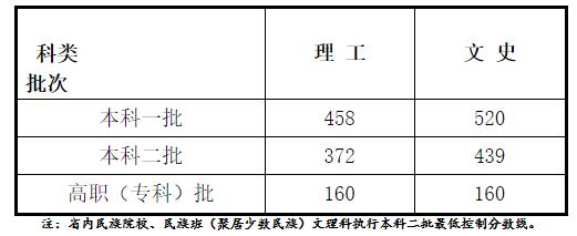 2020年甘肅省普通高校招生錄取最低控制分數線