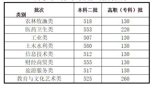 2020年甘肅省高等職業教育招生中職升學考試錄取最低控制分數線