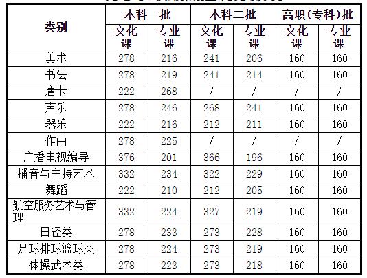 2020年甘肅省普通高校招生藝術體育類專業統考錄取最低控制分數線