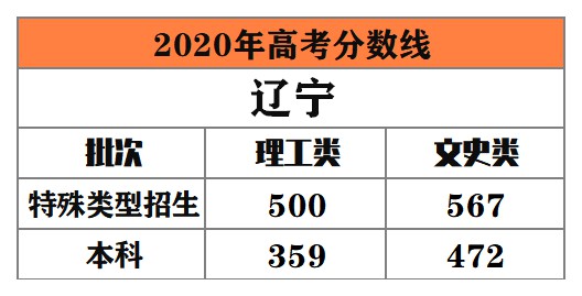 遼寧 特殊類型招生:理工類500分,文史類567分;本科最低錄取控制線:理工類359分,文史類472分。
