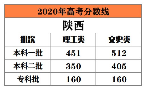 陜西 本科一批:理工類451分,文史類512分;本科二批:理工類350分,文史類405分。