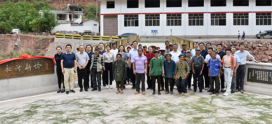 永濟新橋開通儀式現場,同濟大學校長一行和村民們合影。江平 攝