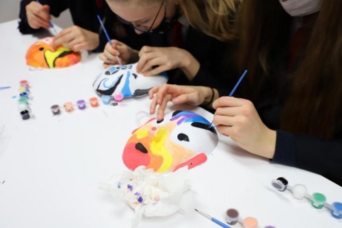面塑的大熊貓捏得栩栩如生,中國功夫的招式比劃得有模有樣,典雅的秋菊在宣紙上展開了花瓣,京劇臉譜在筆下變得鮮活,飽含墨香的雕版倒印出古樸的漢字,靛藍色染料仿佛為亞麻布施了魔法,清幽的茶香從手中的杯盞里彌漫開來……北京德威英國國際學校孩子們在老師的帶領下在中華文化的海洋里遨游,眼里是掩不住的好奇與驚嘆。