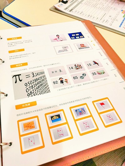 翻看七田真課程體系介紹手冊后,記者驚訝地發現,圓周率作為主要內容被安排在3歲階段的專項訓練課程里。這節課的教學目標是,“記憶200位圓周率,提升記憶容量和專注力”。