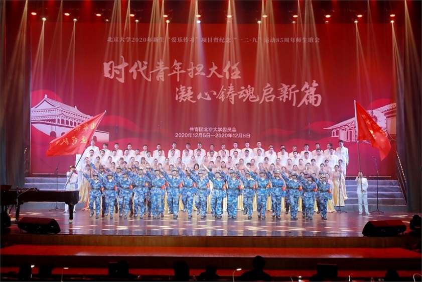 一代人有一代人的長征,一代人有一代人的擔當。追憶85年前“一二·九”風雷激蕩,中國青年高擎愛國主義旗幟,為救亡圖存不懈斗爭;如今站在嶄新的歷史起點上,中國青年勇擔大任,為中華民族偉大復興奉獻青春韶華。12月5日和6日,一年一度的北京大學2020年新生“愛樂傳習”項目暨紀念“一二·九”運動85周年師生歌會在百周年紀念講堂觀眾廳隆重上演。