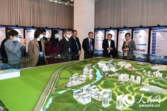 參加大學校長論壇的各高校領導參觀南科大校園建設沙盤。 人民網記者 翁奇羽 攝