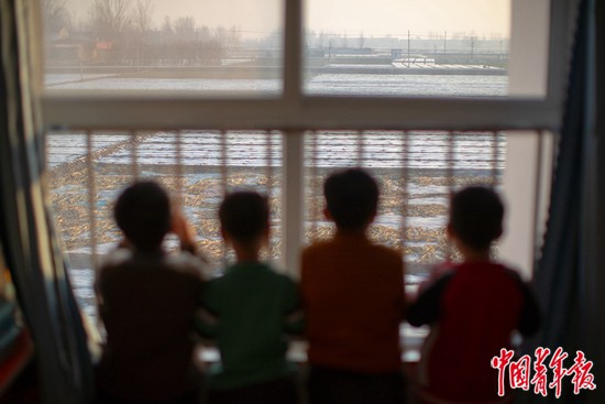 2019年12月13日,河北省邯鄲市大名縣營鎮鄉中心幼兒園,孩子們趴在教室的窗口。中青報·中青網記者 李雋輝/攝