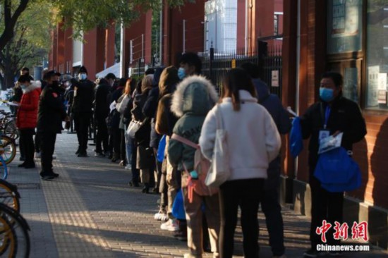資料圖:2020年11月29日,北京市東城區一考點外,國考考生排隊等候入場。中新社記者 蔣啟明 攝
