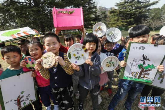 3月30日,小朋友們在中國兒童中心內展示“畫春天”作品。