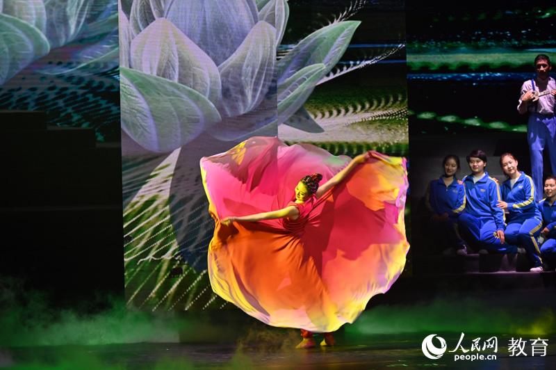 學生在臺上進行舞蹈表演。人民網記者 何淼 攝