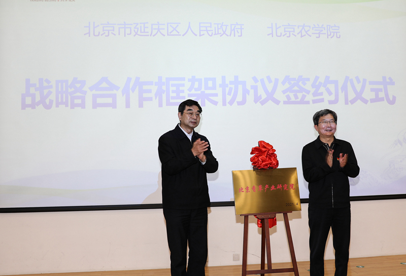 人民網北京4月30日電 28日,北京農學院與北京市延慶區人民政府簽訂戰略合作協議,延慶區委書記穆鵬、北京農學院黨委書記楊軍為“北京香草產業研究院”揭牌。雙方將聚焦“綠色發展研究、都市農業增效、‘三農’人才培養”開展深度合作。
