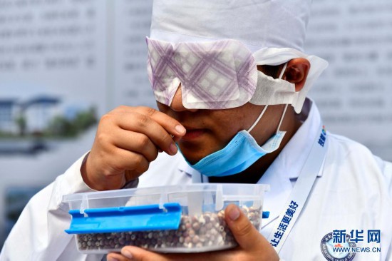5月20日,在山東國際會展中心,濟南護理職業學院學生展示聞香識藥技能。
