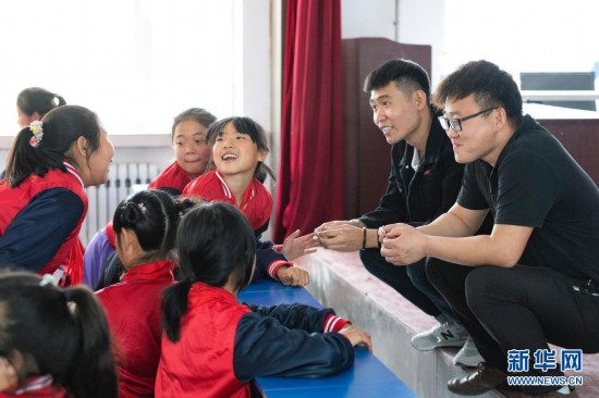 在黑龍江省安達市任民鎮中心小學,“村里的孩兒”音樂班的孩子結束中午的合唱訓練后和老師交流(5月25日攝)。