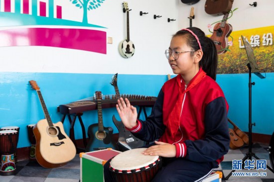 在黑龍江省安達市任民鎮中心小學,“村里的孩兒”音樂班的孩子進行樂隊排練(5月27日攝)。
