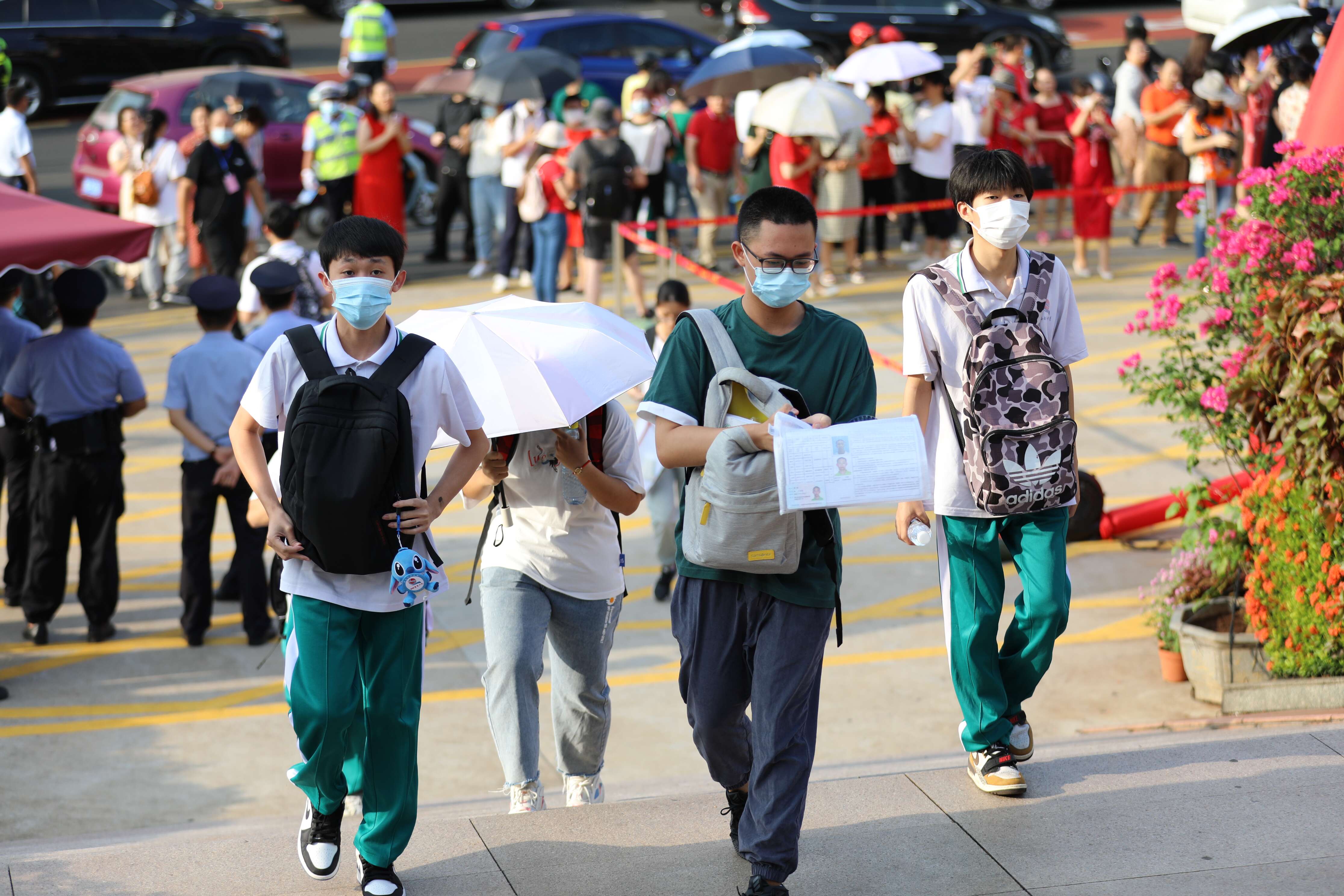 海南華僑中學考點,考生步入考場。人民網 孟凡盛攝