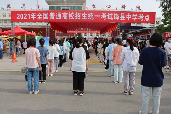 近期,一些地方出現本土感染和傳播病例,根據中國疾控中心研判,當前疫情防控形勢依然嚴峻,需要繼續按照常態化防控的要求落實各項防控措施。記者今天早上在山西運城絳縣中學考點看到,考生們戴好口罩,間隔一定距離,有序排隊進入考場。據介紹,為了做好疫情防控工作,山西各考點都配備一名醫護專業人員擔任副主考,并安排一所定點醫院承擔醫療衛生保障任務。同時,要求所有考生在考前14天進行健康監測,每日填寫體溫監測登記表。