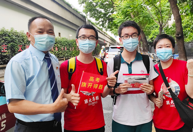 廣州愛心送考出租車司機朱敬懷接載考生順利抵達廣東省廣雅中學考點。來源: 廣州市交通運輸局、廣州市公交集團白云(廣交)公司