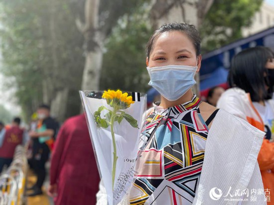 考生家長魏考生準備向日葵,寓意“一舉奪魁”。人民網 張聿修攝