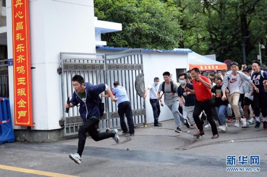 6月9日,考生在考試結束后跑出湖南省長沙市一中考點。