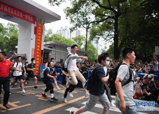6月9日,考生在考試結束后跑出湖南省長沙市一中考點。