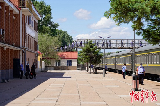 6月6日,大楊樹考生在火車站外集合,準備乘“高考專列”前往阿里河。