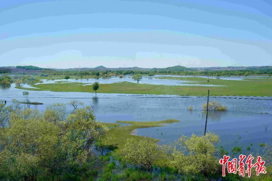 高考專列行駛路上,鐵路沿線的甘河濕地。