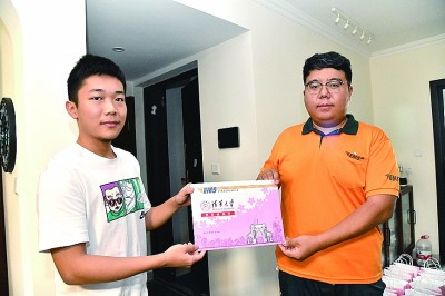 7月12日,山東省濟南市郵政分公司的投遞員將來自清華大學的錄取通知書投遞給濟南外國語學校畢業生毛姜壹。這是山東郵政投遞的山東省第一封高考錄取通知書。至此,山東省高考錄取通知書投遞工作拉開大幕。崔鵬森攝/光明圖片