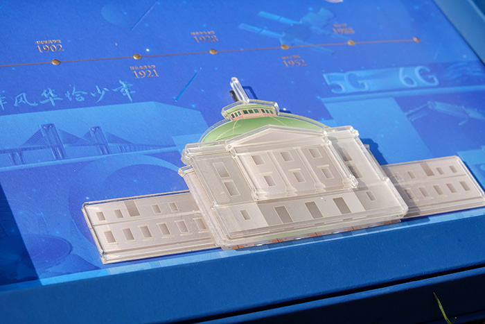背景板上,可以看到東南大學標志性的四牌樓南校門、以及5G到6G的變遷、中國天眼、探月計劃、三峽大壩、港珠澳大橋等學校近年來參與到的國家重器工程,均以深淺漸變的UV工藝有層次的排布在一起。每一項卓越的成就,都是東南大學的光榮和驕傲。