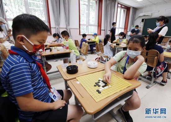 當日,為豐富暑期生活,北京東城區中小學生智力運動會棋類、數獨比賽在府學胡同小學和西中街小學舉行。9所中學和26所小學的近500名選手參加了比賽。新華社發(周良 攝)