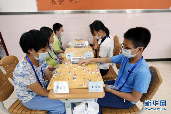 當日,為豐富暑期生活,北京東城區中小學生智力運動會棋類、數獨比賽在府學胡同小學和西中街小學舉行。9所中學和26所小學的近500名選手參加了比賽。新華社發(周良 攝)