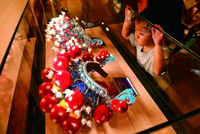 暑假期間,河北省石家莊市不少家長帶著孩子來到河北博物院,學習當地歷史知識,感受傳統文化魅力,充實暑期生活。圖為一位小朋友在非遺展廳參觀戲曲道具。