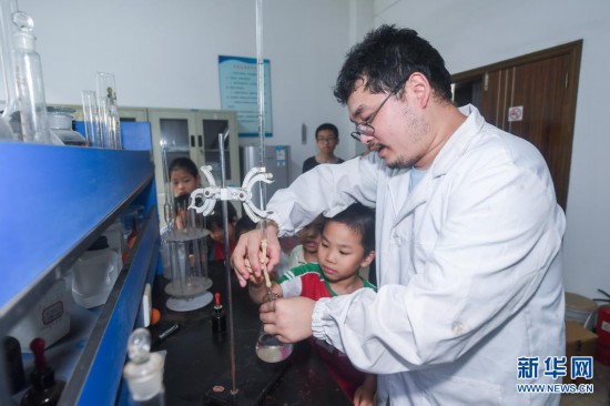 7月29日,在位于東林鎮的浙江金甲飼料有限公司內,員工子女參觀企業實驗室。新華社記者 徐昱 攝