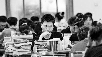 進入暑假,湖南省衡陽市南華大學圖書館座無虛席,部分大學生利用假期留在學!俺潆姟,積極復習為考研做準備。彭鵬攝/光明圖片