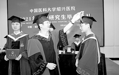 中國醫科大學紹興醫院2021屆碩士研究生畢業典禮,15名學子圓滿完成學業。單明銘攝/光明圖片